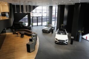 أحدث صالة عرض ومركز خدمة وصيانة متكامل لمجموعة أبو غالي موتورز ومرسيدس بنز في مصر و شمال أفريقيا مواكب لأعلى المواصفات العالمية، بتصميم معماري وتكنولوجي بمفهوم “MAR2020” وهو يعرف ب or Markenauftritt, Brand appearance retail الخاص بالعلامة التجارية الألمانية، الذي يوفر أحدث وسائل التكنولوجيا الرقمية والأساليب التفاعلية مع العملاء مما يحفز تجربة الحياة الواقعية من خلال الشاشات الذكية ومكبرات الصوت وتقديم أفضل خدمة وتجربة شخصية فريدة من نوعها.