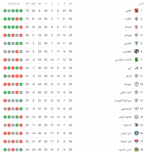 أهم نتائج مباريات الدوري المصري الممتاز وترتيب الفرق بعد الجولة الحالية