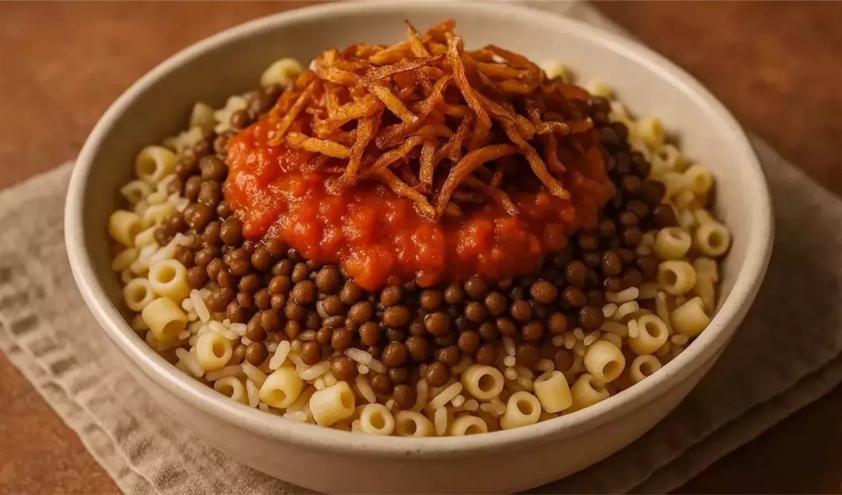 من جانب آخر، يشير خبراء التغذية إلى أن الكشري طبق متوازن إذا تم تناوله بكميات معتدلة، خاصة إذا قللنا كمية الزيت أو البصل المقلي.