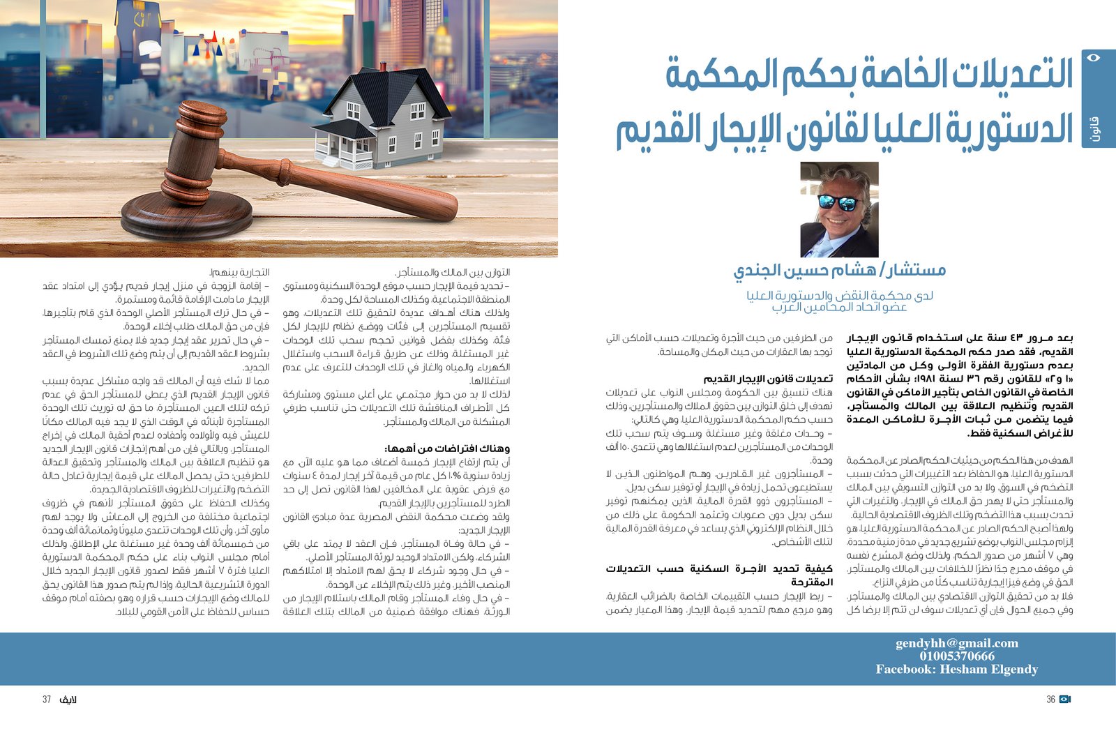 التعديلات الخاصة بحكم المحكمة الدستورية العليا لقانون الإيجار القديم.