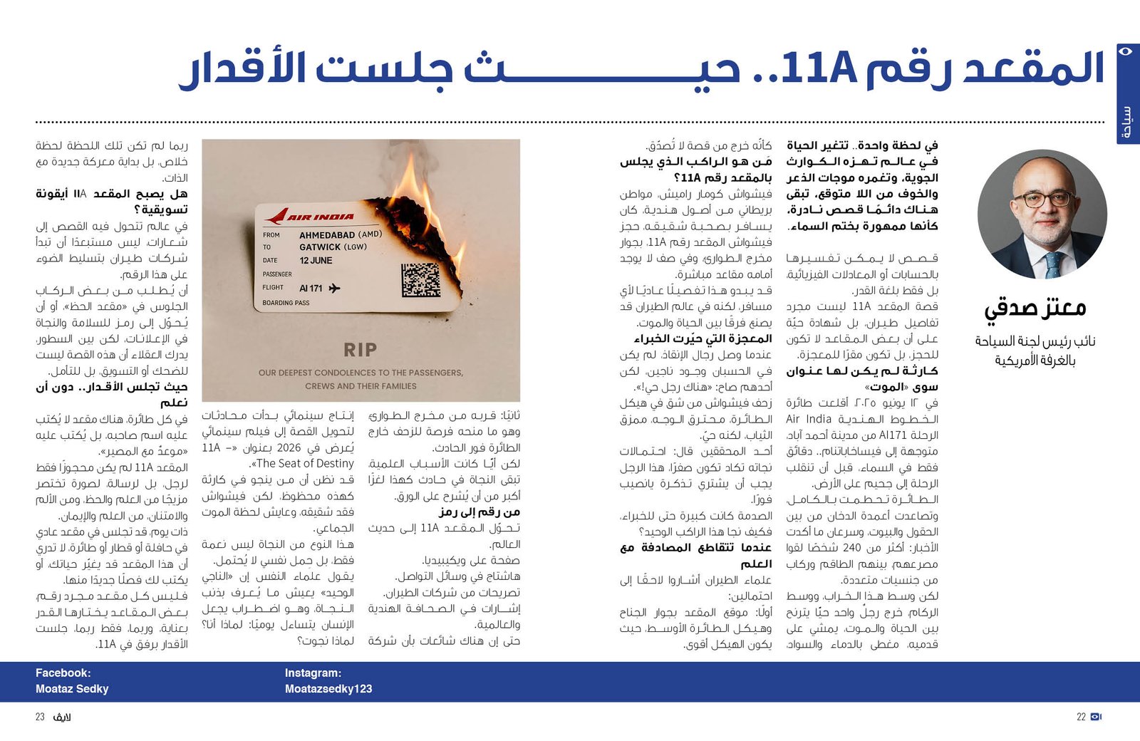 المقعد 11A لم يكن محجوزًا فقط لرجل… بل لرسالة، لصورة تختصر مزيجًا من العلم والحظ، ومن الألم والامتنان، من العلم والإيمان.