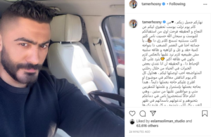 ونشر أيضا تامر حسنى، صورة له من داخل سيارته، وكتب فى تعليقه عليها: “نهاركم جميل زيكم، من كام يوم نزلت بوست تحفيزى ليكم عن النجاح و الحقيقه فرحت أوي من استقبالكم للبوست وسبحان الله حسيت ناس كتير كانت مستنيه تسمع كلام زي دا”.