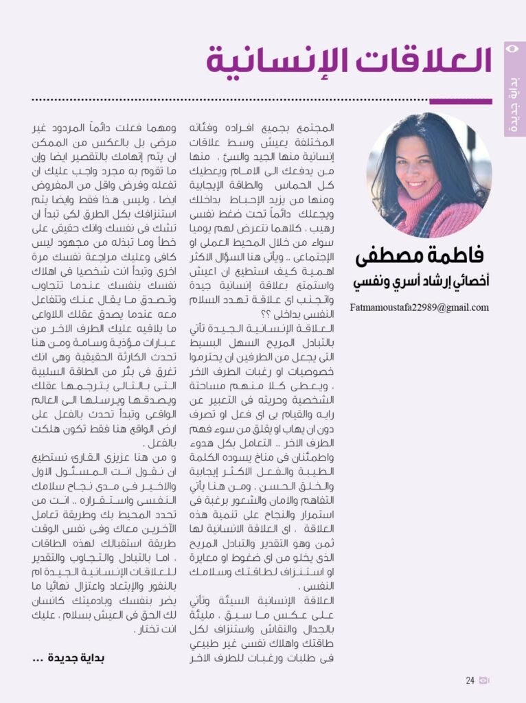 كتب : فاطمة مصطفى/ أخصائي إرشاد أسري و نفسي