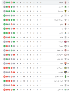 ترتيب جدول الدورى الممتاز بعد الجولة الثامنة:
