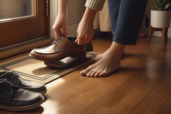 • تُطبّق عادة خلع الحذاء خارج المنزل، الأمر الذي يقلّل عدد مرات تنظيف المنزل، ويقي من نقل الجراثيم من الخارج إلى الداخل.