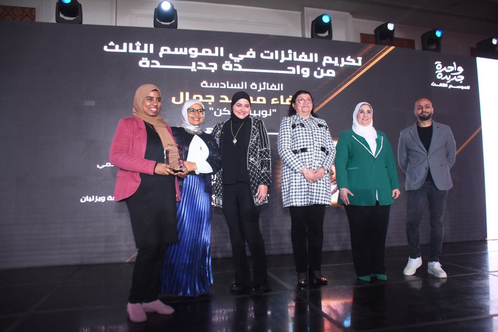 د. نيفين القباج وزيرة التضامن الاجتماعي تمنح الفائزات في مسابقة “واحدة جديدة” مائتي ألف جنيه لدعمهن.