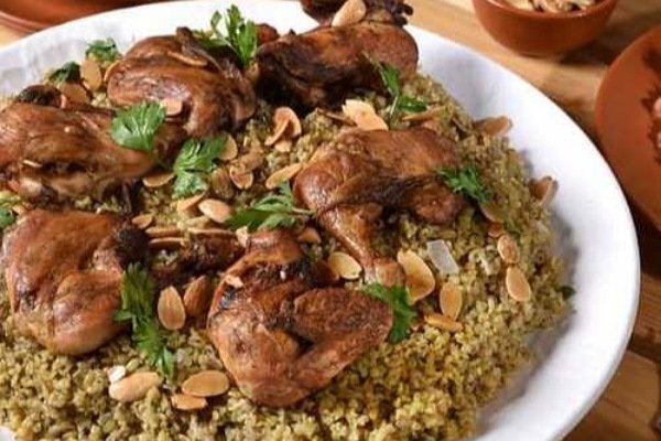 هو برغل مع صلصة حمراء وعلى وجهها قطع دجاج وصفة غنية بالفوائد الغذائية وبسعرات حرارية أقل وطريقة تحضير سهلة وسريعة .