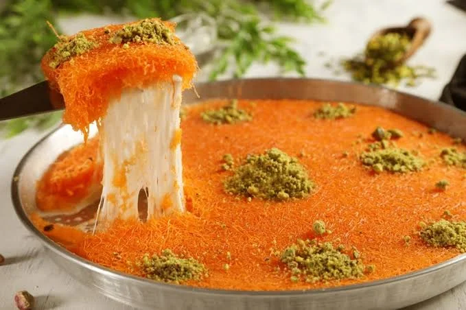 تعتبر الكنافة النابلسية سيدة الحلويات الشرقية بلا منازع، وهي الطبق الذي لا تكتمل الموائد الرمضانية أو المناسبات السعيدة بدونه. تعود أصولها إلى مدينة نابلس الفلسطينية، وتتميز بلونها البرتقالي الجذاب ومزيجها الفريد بين ملوحة الجبن الساخن وحلاوة القطر (الشربات)، مما يخلق تجربة تذوق لا تُنسى.
