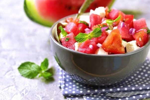 بموسم الصيف استغلي الفواكة الموسمية لتتمتعي بوجبة الدايت الخفيفة والسهلة التحضير ، جربي سلطة البطيخ الشهية مع الجبن الأبيض الرائع الطعم.. وبالصحة والعافية
