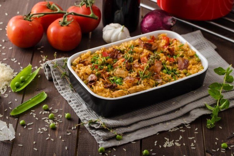 6. اسكبي الخليط في صينية فرن، وغطي الصينية بورق أولمنيوم وأدخليها الفرن لمدة 30 دقيقة.