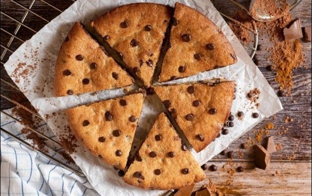 - ضعي كيكة الكوكيز في طبق التقديم، وزيّنيها بحبيبات الشوكولاتة، ثم قدميها.
