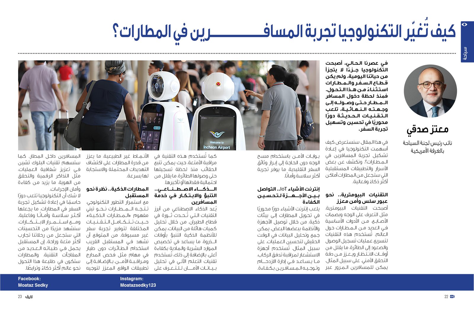 في عصرنا الحالي، أصبحت تطبيقات التكنولوجيا جزءًا لا يتجزأ من حياتنا اليومية، ولم يكن قطاع السفر والمطارات استثناءً من هذا التحول. فمنذ لحظة دخول المسافر المطار حتى وصوله إلى وجهته النهائية، تلعب التقنيات الحديثة دورًا محوريًا في تحسين وتسهيل تجربة السفر.