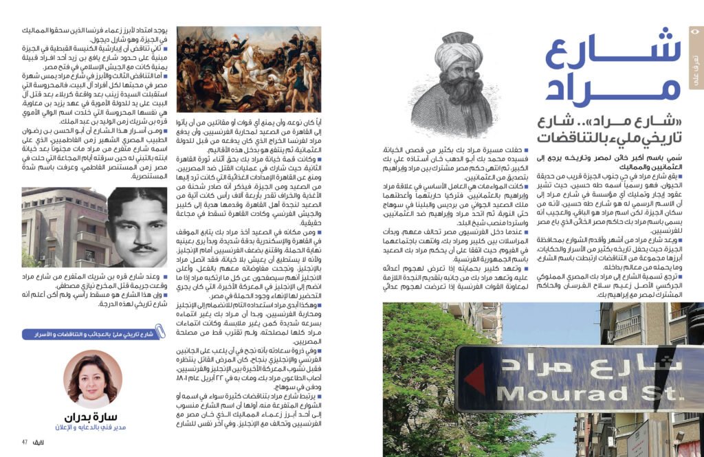 يرتبط شارع مراد بتناقضات كثيرة سواء في اسمه أو الشوارع المتفرعة منه، أولها أن اسم الشارع منسوب إلى أحد أبرز زعماء المماليك الذي خان مصر مع الفرنسيين وتحالف مع الإنجليز.