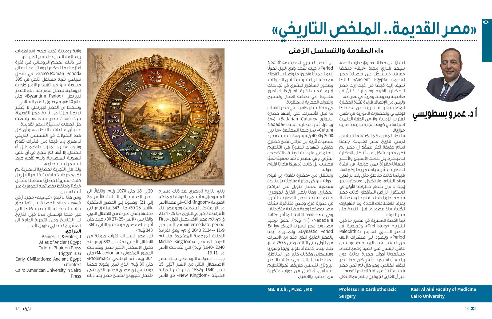 اعتبارًا من هذا العدد ولإصدارات لاحقة، سيجد قارئ مجلة «لايڤ» ملخصًا معرفيًا مُبَسَّطًا عن حضارة مصر القديمة «Ancient Egypt» لعلها تضيف إليه فيضًا من غيث إرث مصر الحضاري الفريد. وهو إرث غنيٌّ في تفاصيله ودروسه، وفريدٌ في مفرداته.