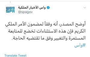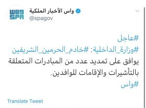و ذلك خلال فترة تعليق الدخول و الخروج من المملكة لمدة ثلاثة أشهر.