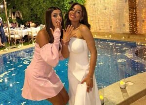 وقبل أيام قليلة من عقد القران، كانت العروس، فريدة أشرف، قد إحتفلت بليلة الحنة في مدينة دبي بصحبة صديقاتها.