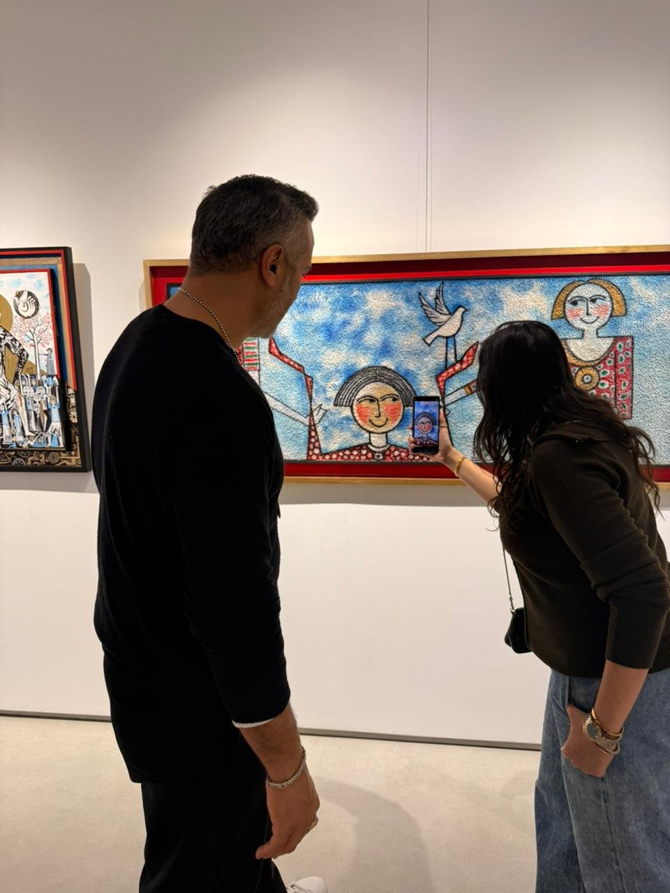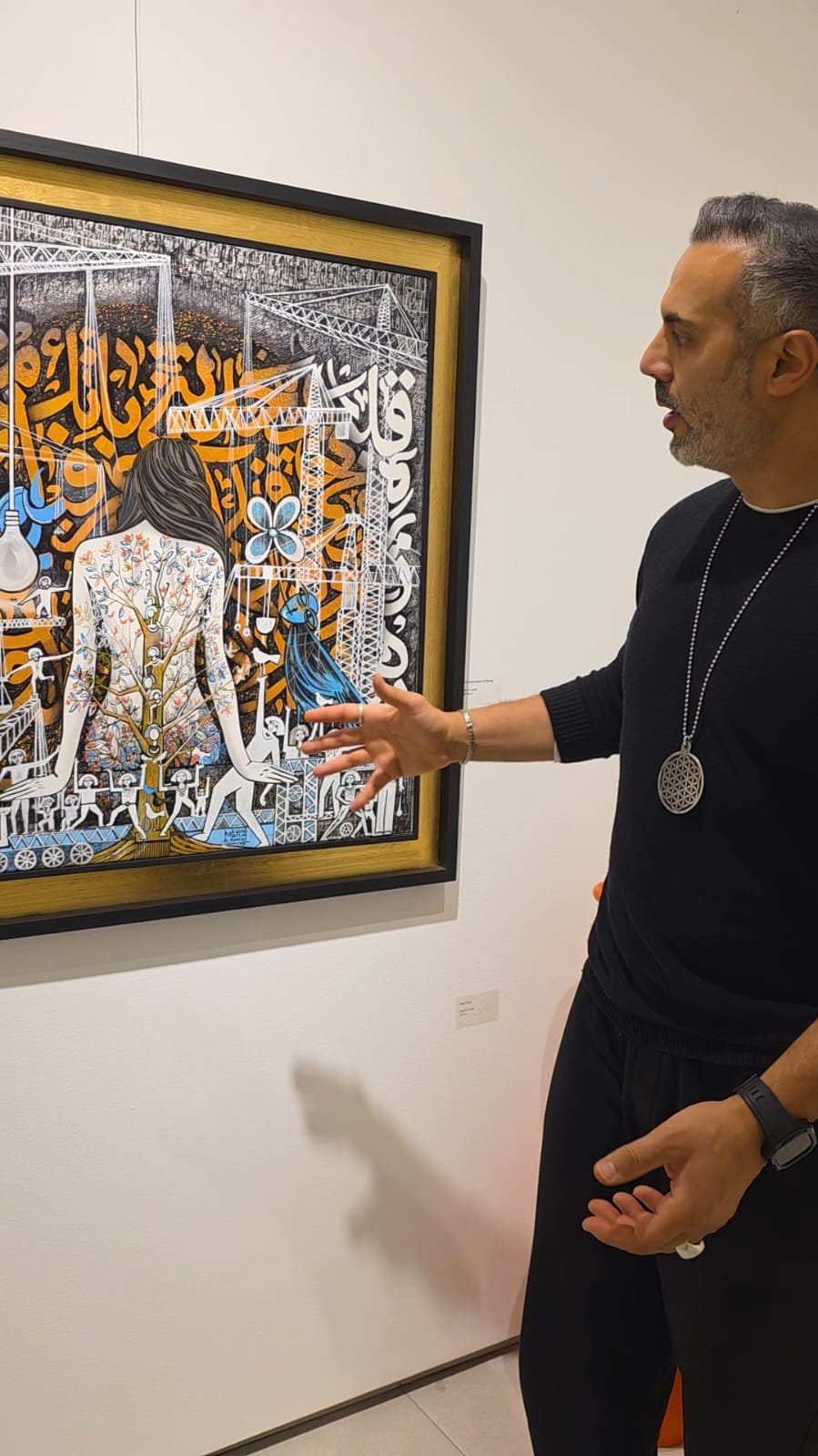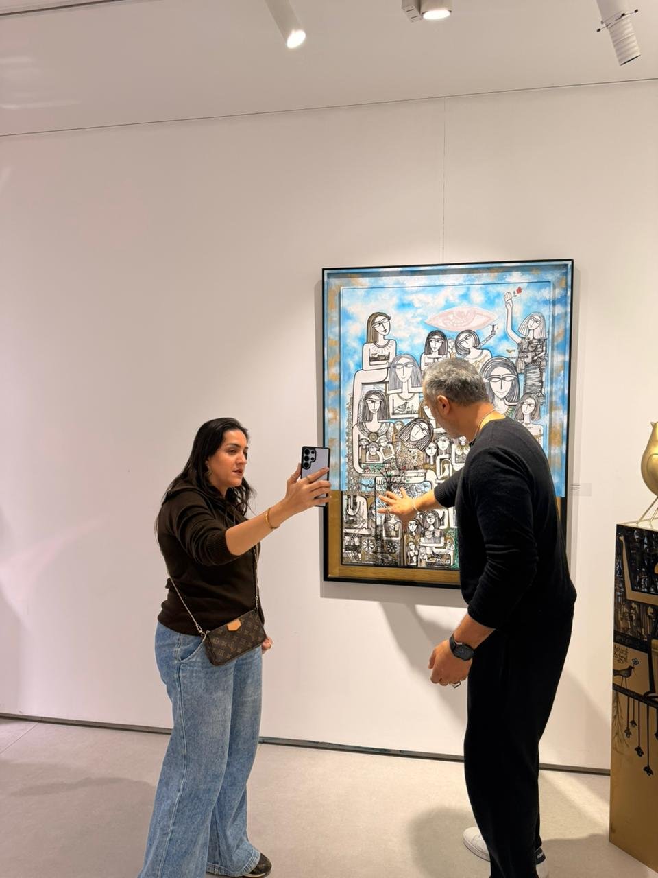 وتناولت الجولة أيضًا أعمال «Human Layers» التي تجسد تراكم الخبرات الإنسانية، إلى جانب لوحات مثل «Symphony of Joy» التي تعكس حالة من الحرية والسلام، في تأكيد على أن الفن—بحسب وصفه—«لغة طاقة واتصال بين الفنان والمتلقي».