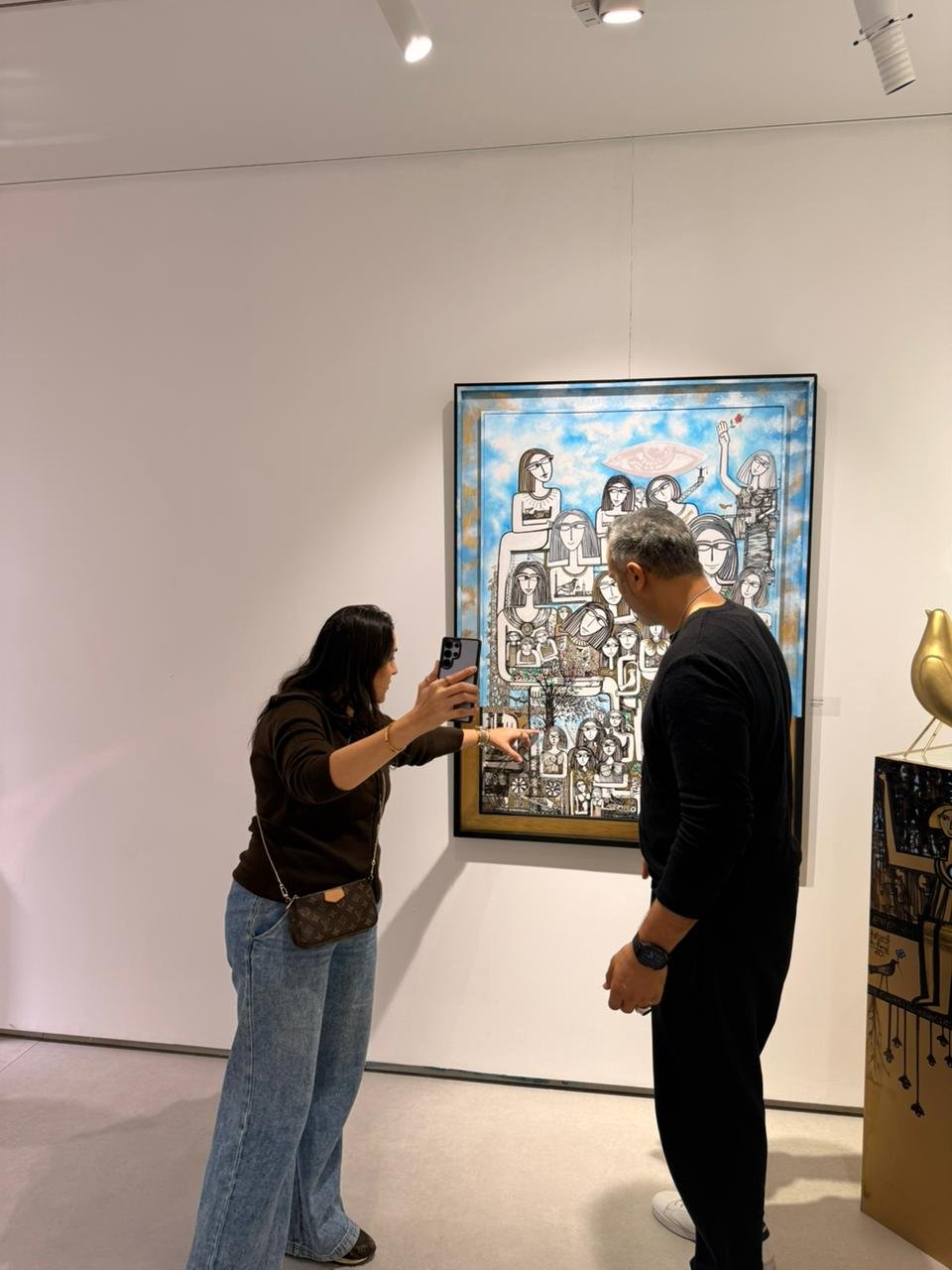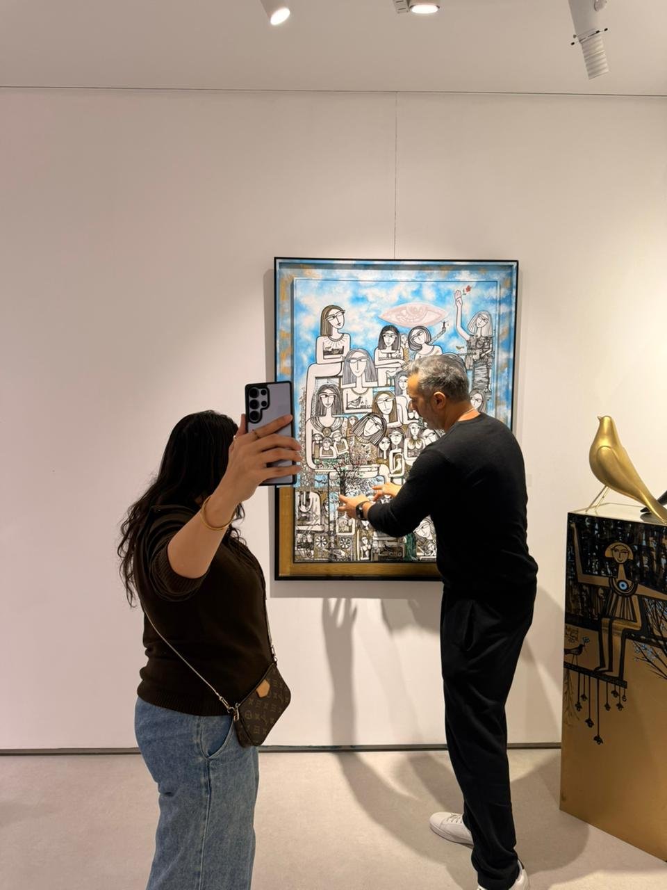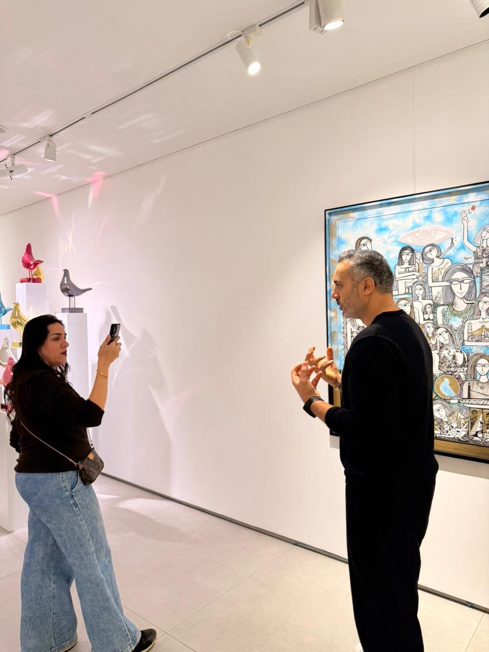 وتناولت الجولة أيضًا أعمال «Human Layers» التي تجسد تراكم الخبرات الإنسانية، إلى جانب لوحات مثل «Symphony of Joy» التي تعكس حالة من الحرية والسلام، في تأكيد على أن الفن—بحسب وصفه—«لغة طاقة واتصال بين الفنان والمتلقي».