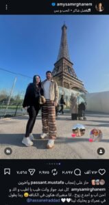 وعلاوة على تصريحاتها التليفزيونية فقد شاركت إيمي جمهورها مؤخراً مشاعرها العفوية عبر حساباتها الرسمية حيث نشرت صورة لهما أمام برج إيفل ووجهت له رسالة مؤثرة بمناسبة عيد زواجهما قائلة : “كل عيد جواز وأنت طيب يا أطيب وألذ وأحن أب وأجدع زوج أنا من غيرك هكون في الكنافة ربنا يطول في عمرك ويخليك لينا”