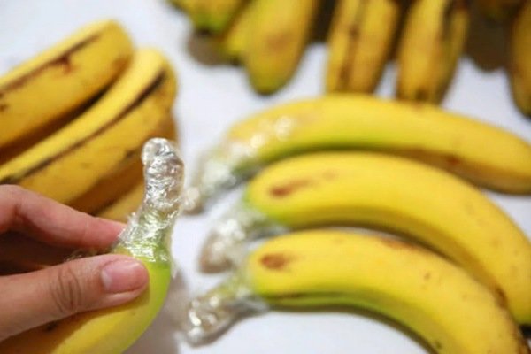 ومن ثم فإنَّ البلاستيك أو ورق الألمنيوم يعمل على إحتواء هذا الغاز مما يمنع وصوله إلى الموز وبالتالي يطيل مدة صلاحيته.