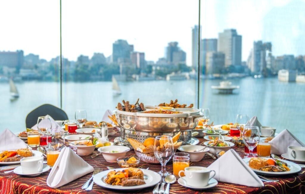 أما إذا كنت من عشاق المذاق المصري الأصيل وأطباق الشرق الأوسط، فليس هناك أفضل من مطعم القرية النوبية بموقعها المميز وإطلالتها الساحرة علي نهر النيل وأجواءها المميزة مما يجعلها الإختيار الأمثل لتجربة إفطار فريدة وتجمع الأهل والأصدقاء علي أنغام التخت الشرقي ولا يفوتك بوفيه الإفطار المفتوح المتنوع في مطعم سوق الساقية سواء بداخل المطعم أو بالتراس الخاص به والمطل علي نهر النيل والقاهرة الساحرة.