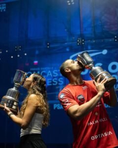 أسود الإسكواش تكتسح فيلادلفيا ويُعد هذا التتويج إنجازًا مزدوجًا له دلالة عميقة إذ تُعد هذه البطولة السابعة التي يتوَّج فيها الثنائي مصطفى عسل وهانيا الحمامي معًا باللقب ذاته.