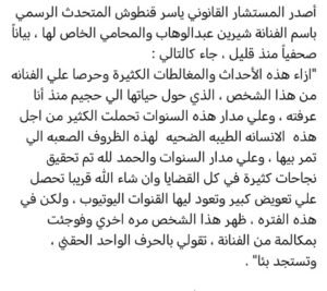 فقد أعلن المستشار القانوني لشيرين، ياسر قنطوش، عن خبر العودة، مشيرًا إلى أن الفنانة تنازلت عن جميع القضايا التي رفعتها ضد حسام حبيب.