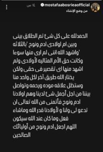 القصة الكاملة لطلاق مصطفى بالرغم من أن الطلاق وقع “بالثلاثة” كما أعلن الفنان إلا أن منشوره إتسم بالرقي والهدوء الشديد.